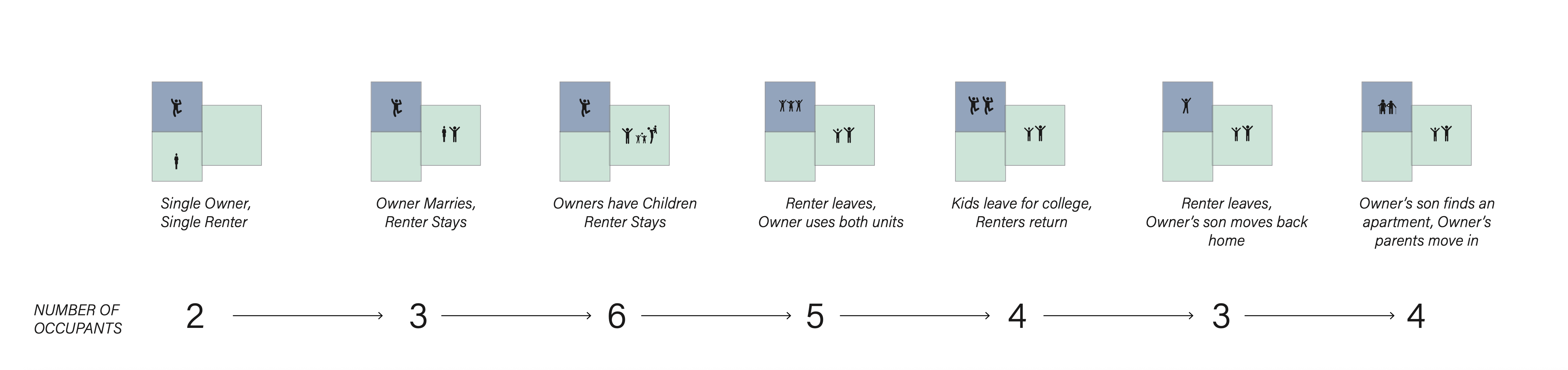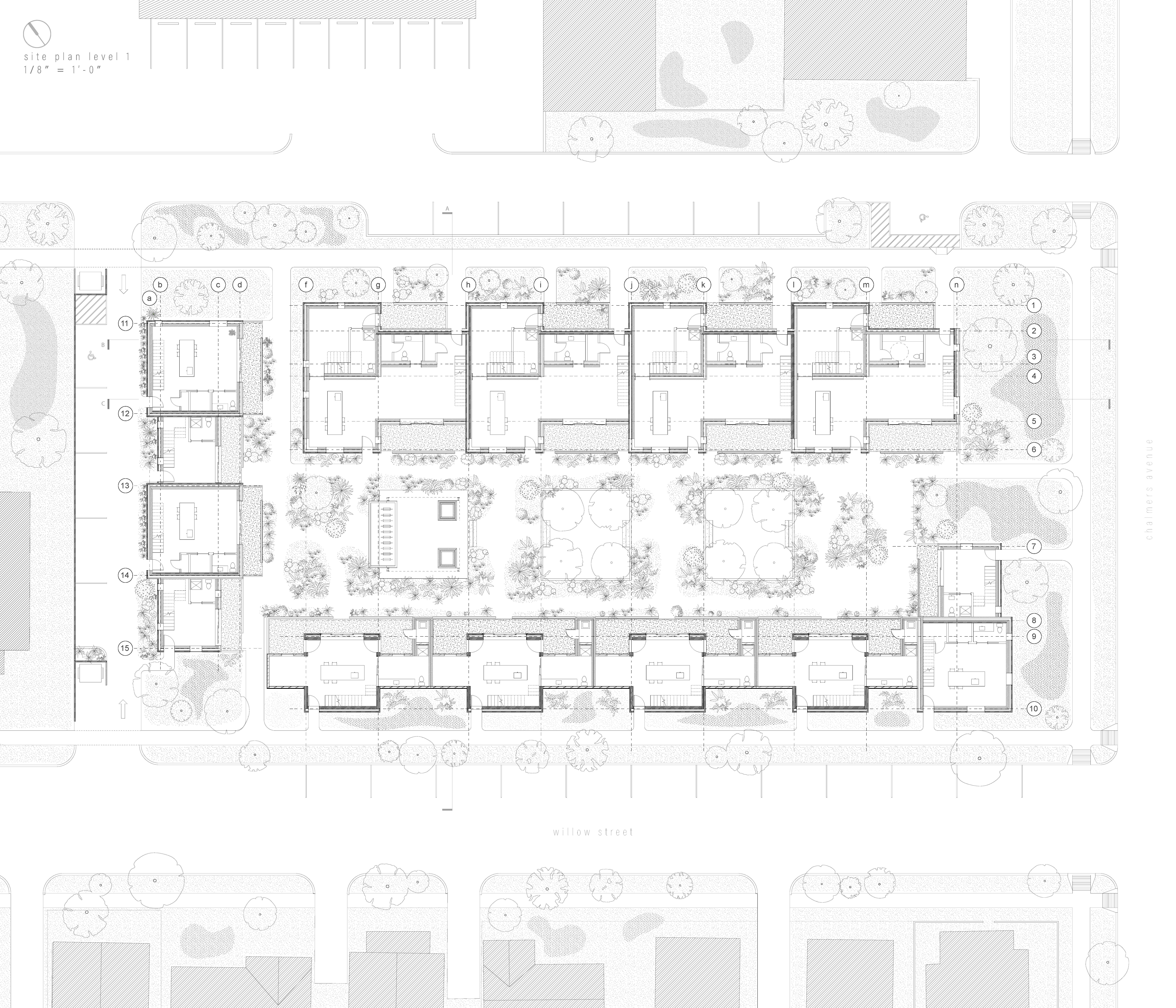 Urban life in the 21st century is characterized by rapidly changing patterns, an increasing number of habitation patterns beyond the traditional nuclear family, and a rediscovery of the power of multigenerational house-holds. A house is no longer the only home. Housing in the urban core of Austin, Texas is a complex battleground where traditional single family typologies are at war with imposing mixed use apartment blocks. This has been brought on as a result of a population rise, primarily consisting of the urban creative class. The influx of new residents has caused a housing shortage and more importantly a skyrocketing of property values throughout the Austin, but especially on the Eastside. Residents who are financially unable to purchase homes are at the mercy of property management groups who offer substandard apartments at premium rates. This has sparked a transient lifestyle lacking in character, culture, and permanence in the domestic domain. Inspired by the notion of housing for a lifecycle, our project aspires to produce homes that can reach beyond the traditional notions of flexible space, and truly accommodate the changing needs while providing for social and economic stability. We see the future of urban living as relationship centric, stabilized but flexible enough to accommodate a variety of new family dynamics. We are attempting to address this problem with hopes of retaining many of the qualities that make the traditional East Austin housing type so charming. A way this can be accomplished is through a reimagining of the house as an opportunity for multigenerational living. User groups in Austin are as diverse as the city itself and why shouldn’t that be reflected in the way Austinites inhabit the urban fabric of the Eastside? LifeCycle seeks to provide homes to young families, couples, empty nesters, University professors, Graduate Students, and many more.